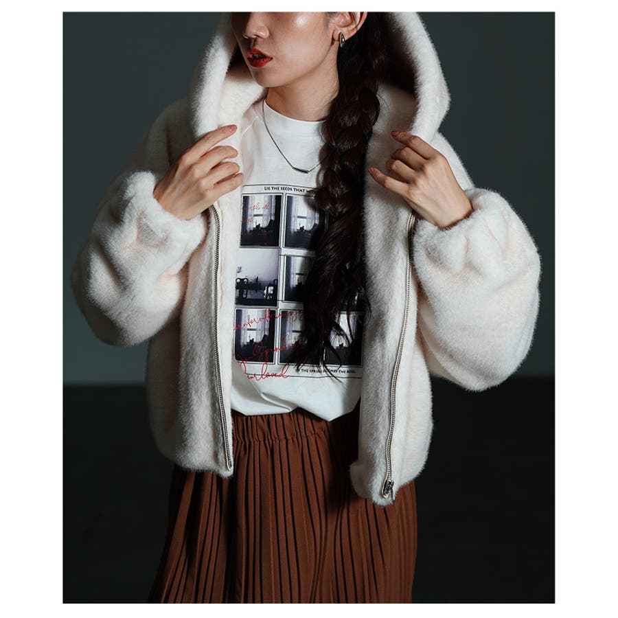 特徴: ファー エコファー フード ジップアップ