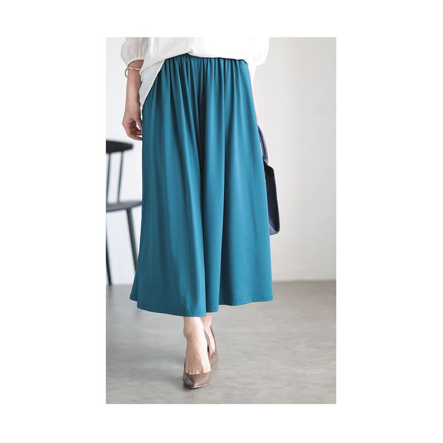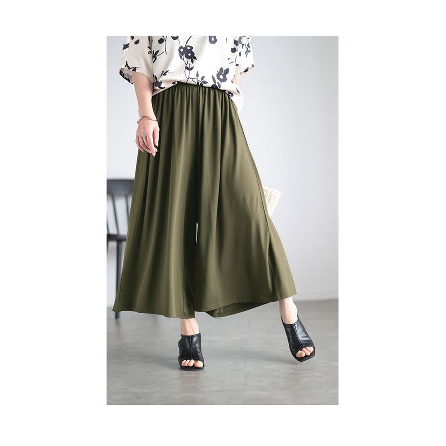 まるでスカートのような美ドレープのとろみガウチョパンツ。