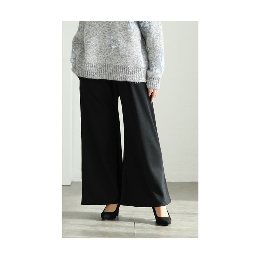 寒さに負けず暖かな穿き心地の裏起毛ワイドパンツ レディース ファッション