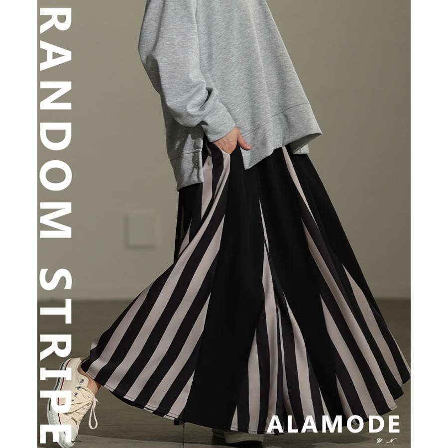 存在感で魅せるランダムストライプフレアスカート レディース ボトムス