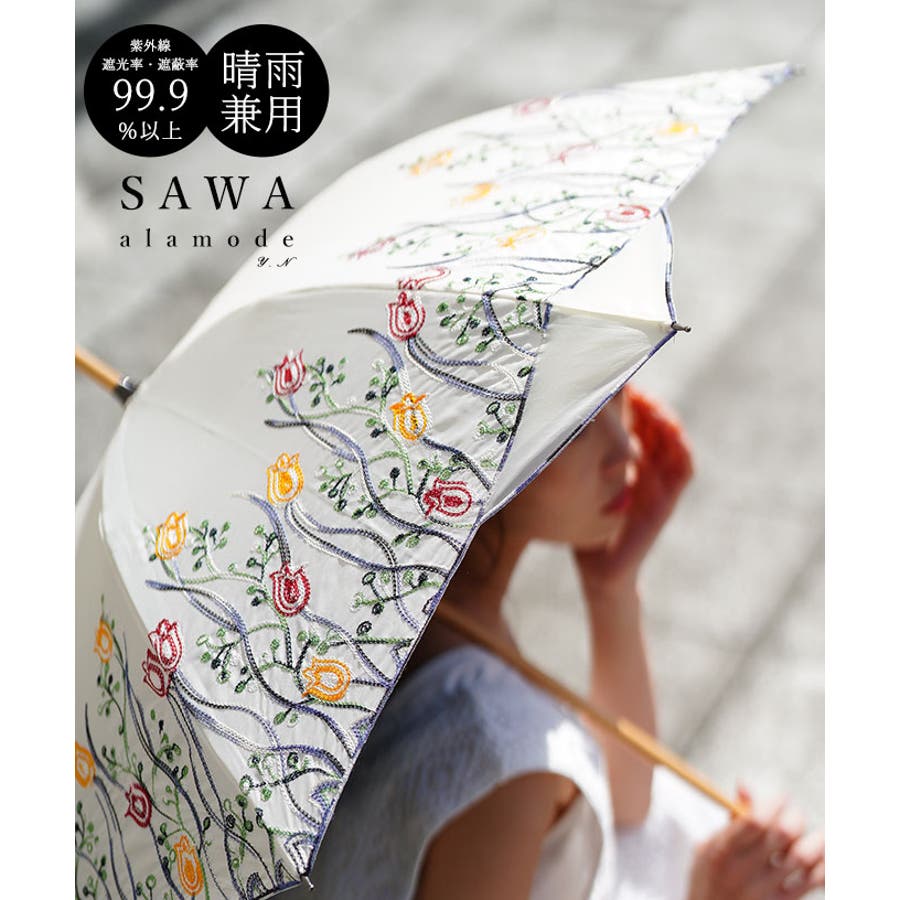 UVカット99 9%チューリップの刺繍が彩る晴雨兼用日傘 レディース