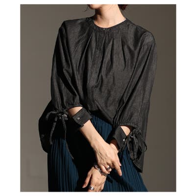 遊び心ある袖口リボン&スリットデニムブラウス レディース ファッション