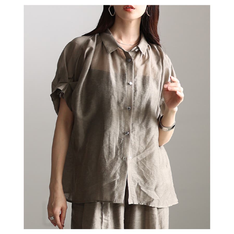 軽やかに抜け感纏うタックフレンチスリーブシアーブラウス レディース ファッション