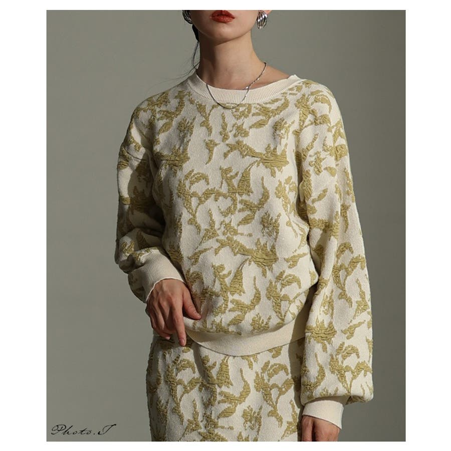 特徴: リーフ ふくれジャガード 立体 凹凸 ニット 袖口リブ 裾リブ