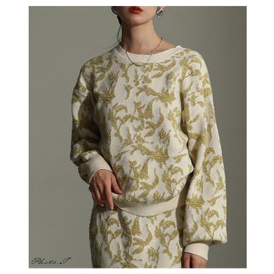 さり気ない個性を纏うリーフモチーフふくれジャガードプルオーバー レディース