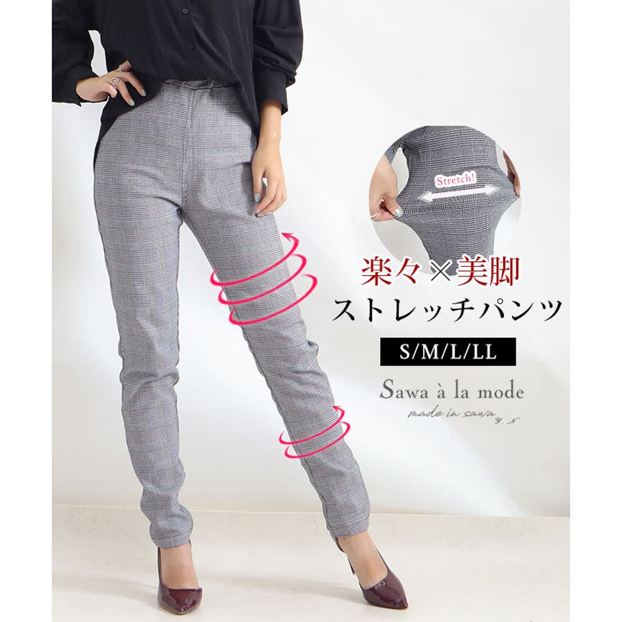 上品なグレンチェック柄美脚ストレッチパンツ レディース ファッション