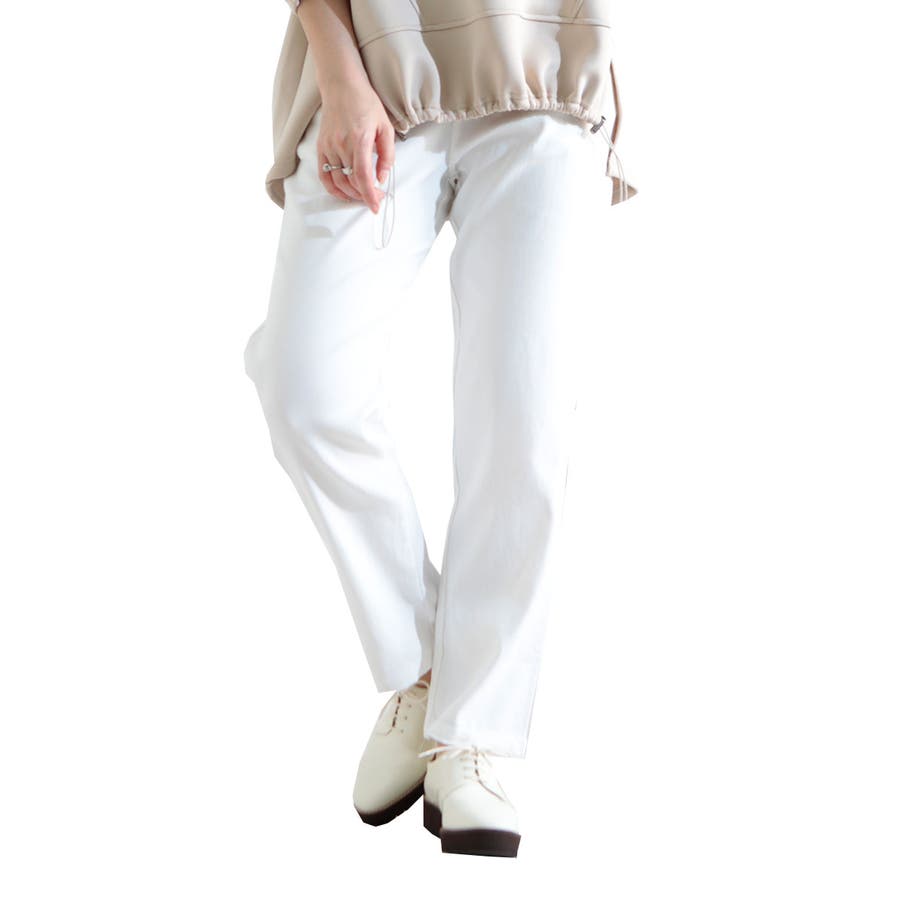 超伸ストレッチ生地を使用しているから動きやすさは抜群、脚のラインを拾わないストレートシルエットは美脚を演出してくれます。