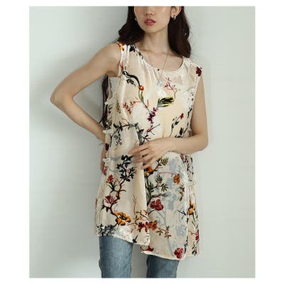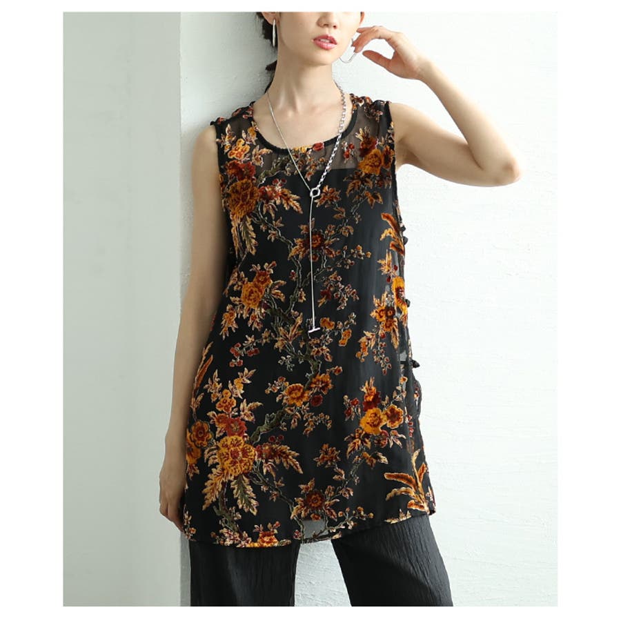 オシャレが惹き立つ艶めくベロアのヴィンテージフラワーチュニック レディース ファ…