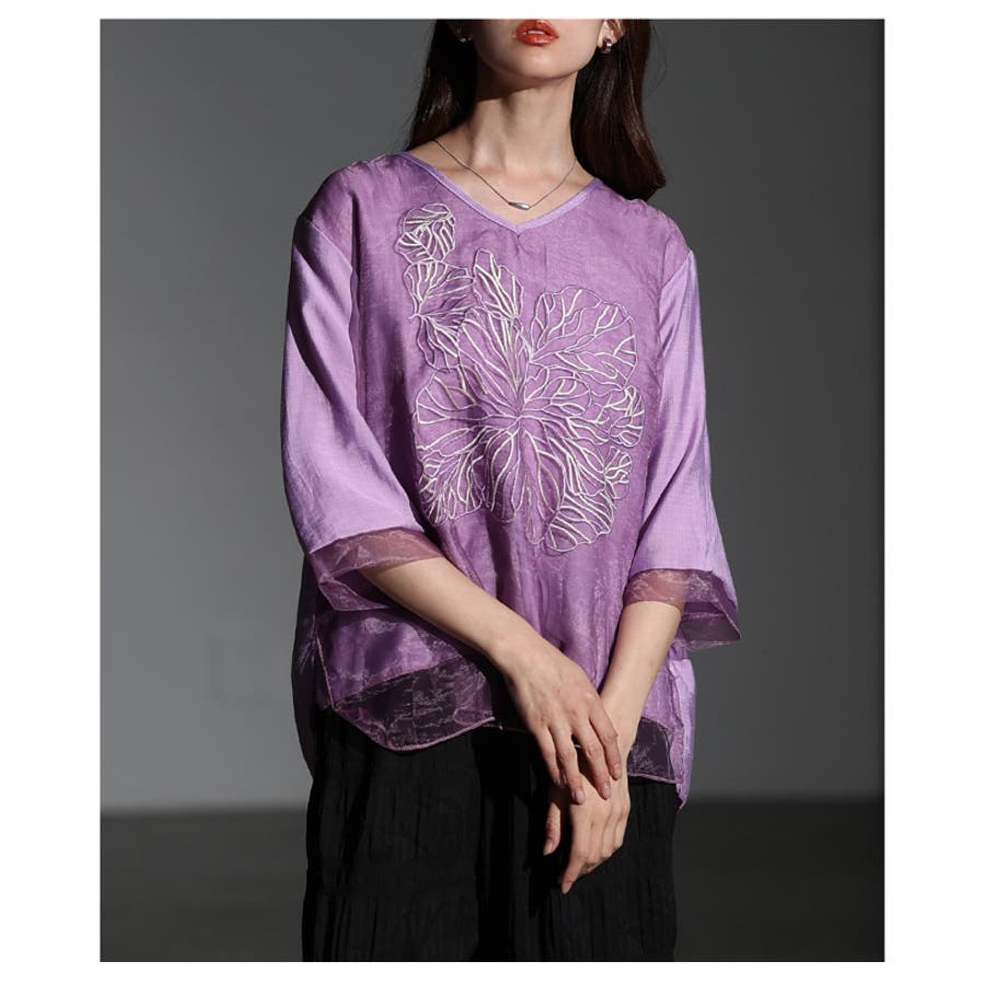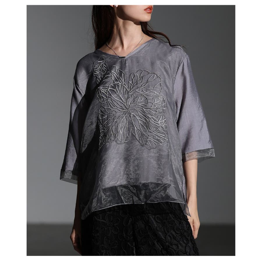 上品な存在感を醸し出すフラワー刺繍×シアーレイヤードブラウス レディース ファッ…