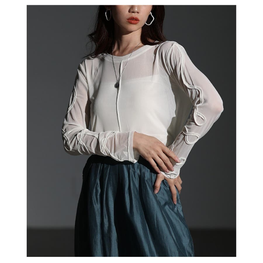 ニュアンス溢れるコード刺繍シアートップス レディース ファッション