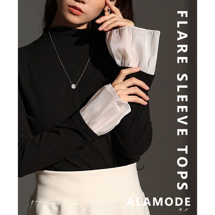 特徴: 異素材 チュール フレア 微起毛 ボトルネック スリム