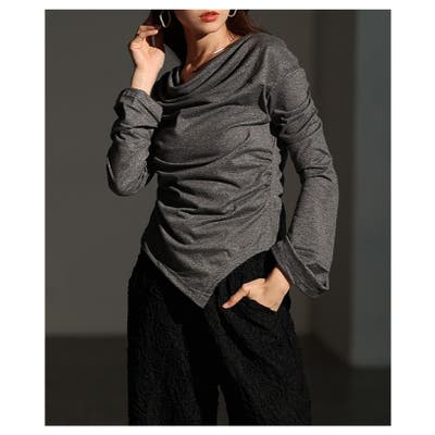 ドレープが魅せるイレギュラーヘムベルスリーブカットソー レディース ファッション