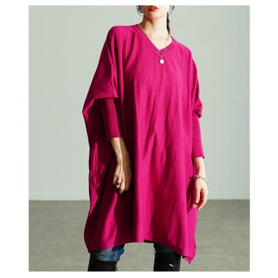 ゆるっとしたビッグシルエットが嬉しいニットチュニックはコンパクトなボトムスと相性抜群!スキニーパンツやレギンス、ストレートスカートと組み合わせるとバランスよくご着用いただけます☆ドルマン型で体型カバー効果もバッチリ!