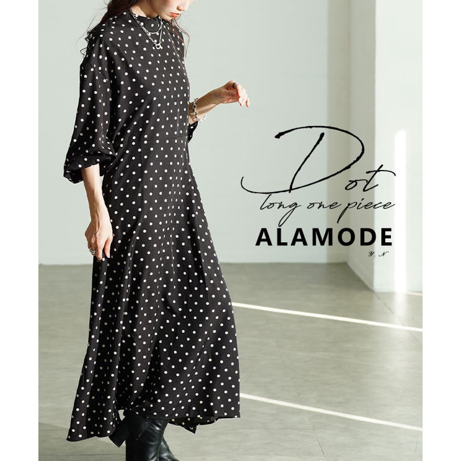 細かなドットでクラシカルムード漂う上品なワンピースの登場です。フレアシルエットでシックに、落ち感のある生地を使用しているから美しいドレープで美人見え!袖を通すだけで決まる主役級の一着です。