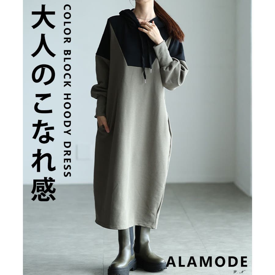 一枚でサマになるバイカラーフーディーワンピース レディース ファッション