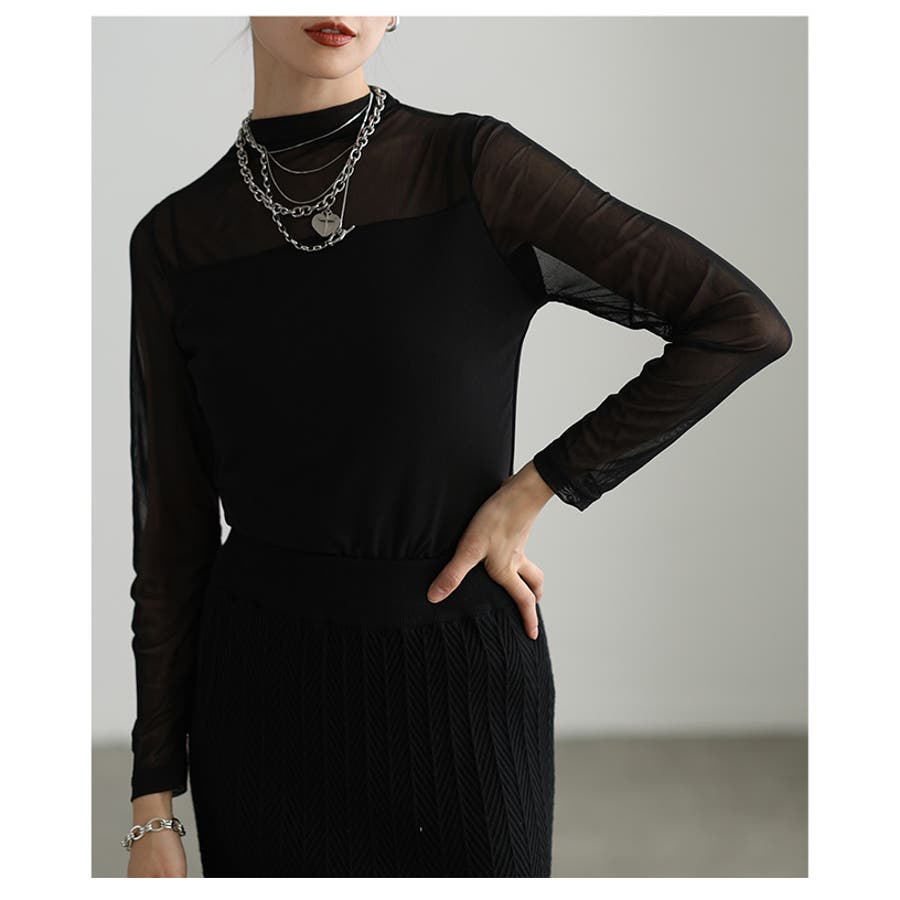 シアーなのに裏起毛で暖かい身頃裏起毛シアートップス レディース ファッション