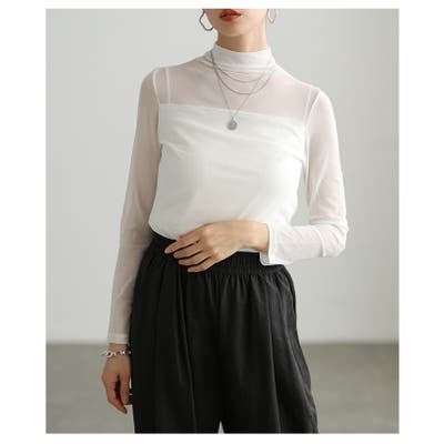 首まわりと袖はシアー生地、身頃は裏起毛という欲張り仕様のトップス。