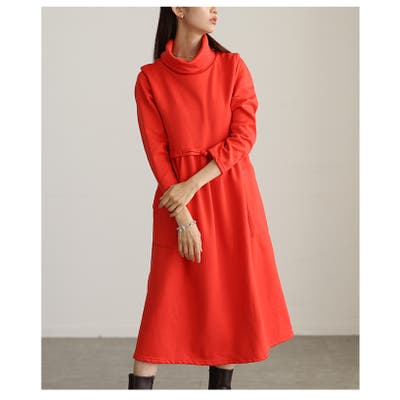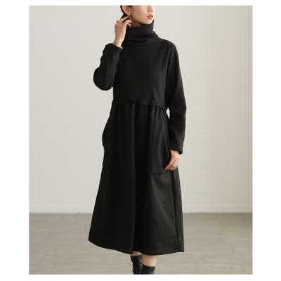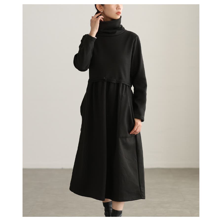 裏起毛が冬の冷えを包み込むワンピースは、ハイネックで首までしっかり暖かいのが魅力。