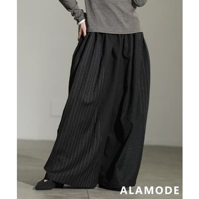 動くたび表情が変わるストライプ切替ワイドパンツ レディース ボトムス