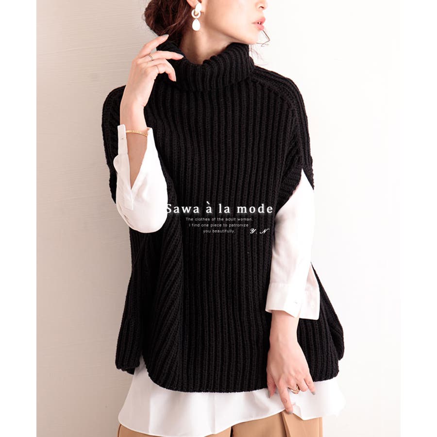 ローゲージニットのリブ編みタートルネックベスト トップス ニット
