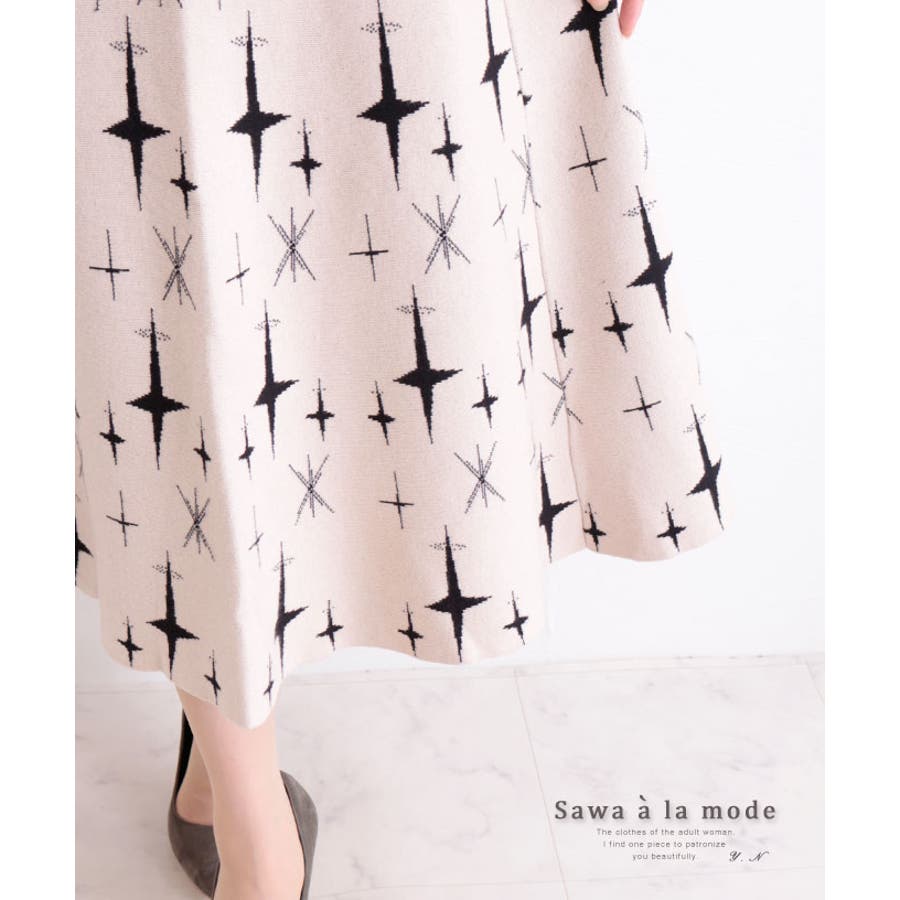 レトロ模様のニットフレアスカート レディース ファッション