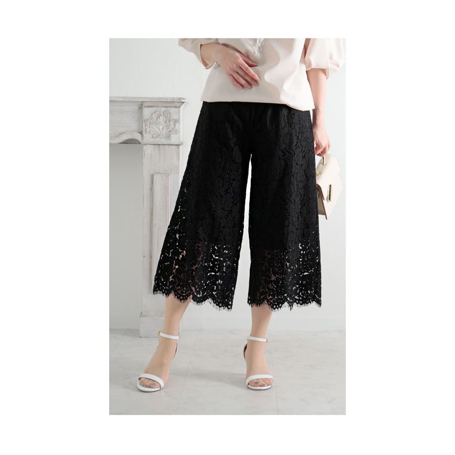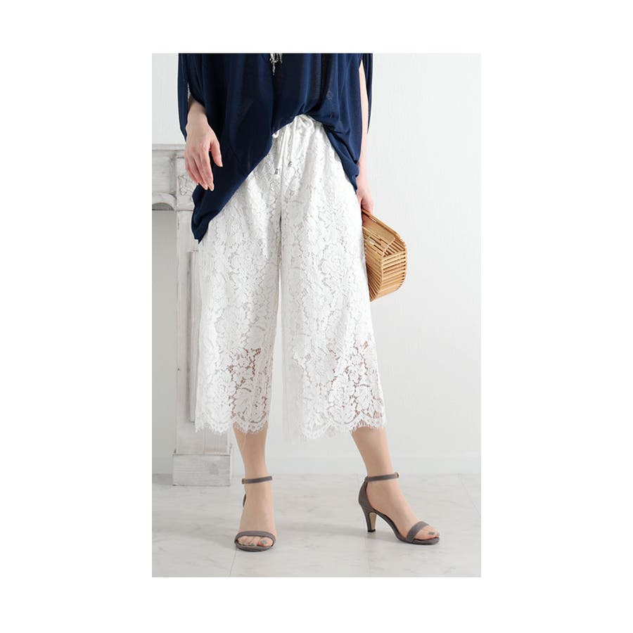ワンピースの下に穿く繊細レースのワイドパンツ レディース ファッション