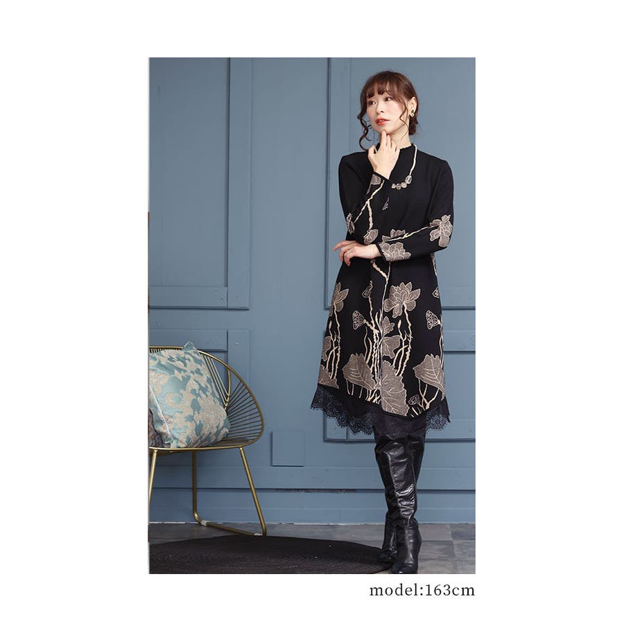 草花立ち昇るレース付きニットワンピース レディース 長袖