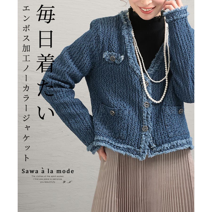 毎日着たいエンボス加工のノーカラージャケット レディース ファッション