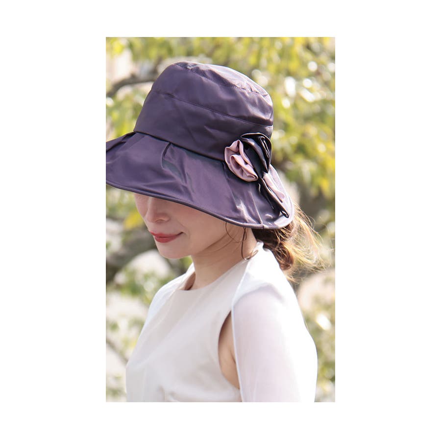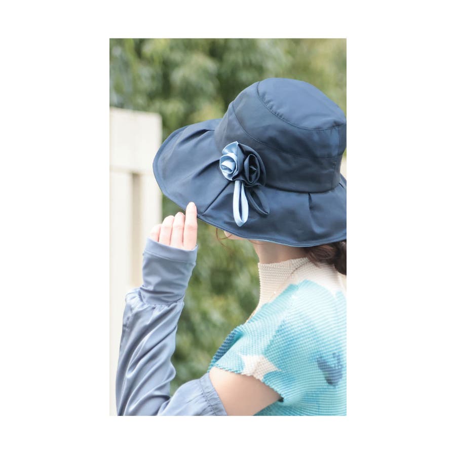 薔薇のコサージュが咲くバイカラー日除け帽子 レディース ファッション