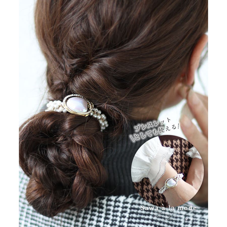 ゴム部分は小さなパールで隠されているのでヘアアレンジにぴったり。