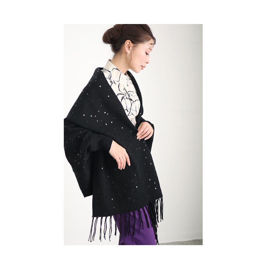星座の煌きを纏うスパンコールストールカーディガン レディース ファッション