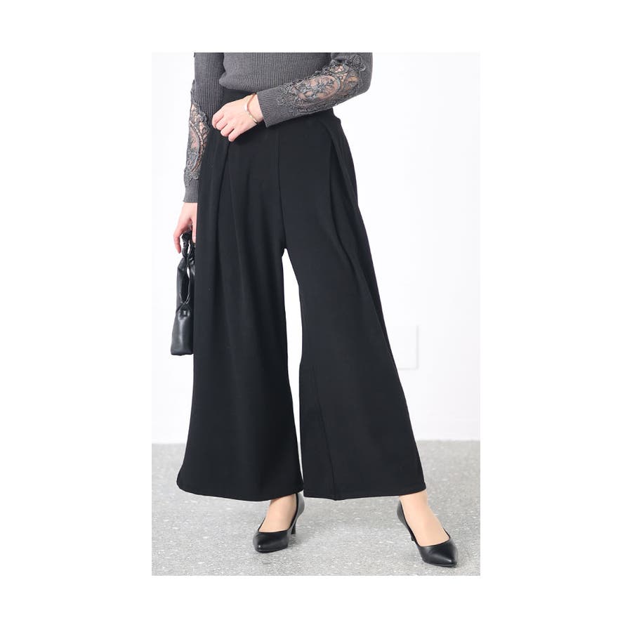 お手洗いの時に裾が床につかないストレッチタックワイドパンツ レディース ファッシ…