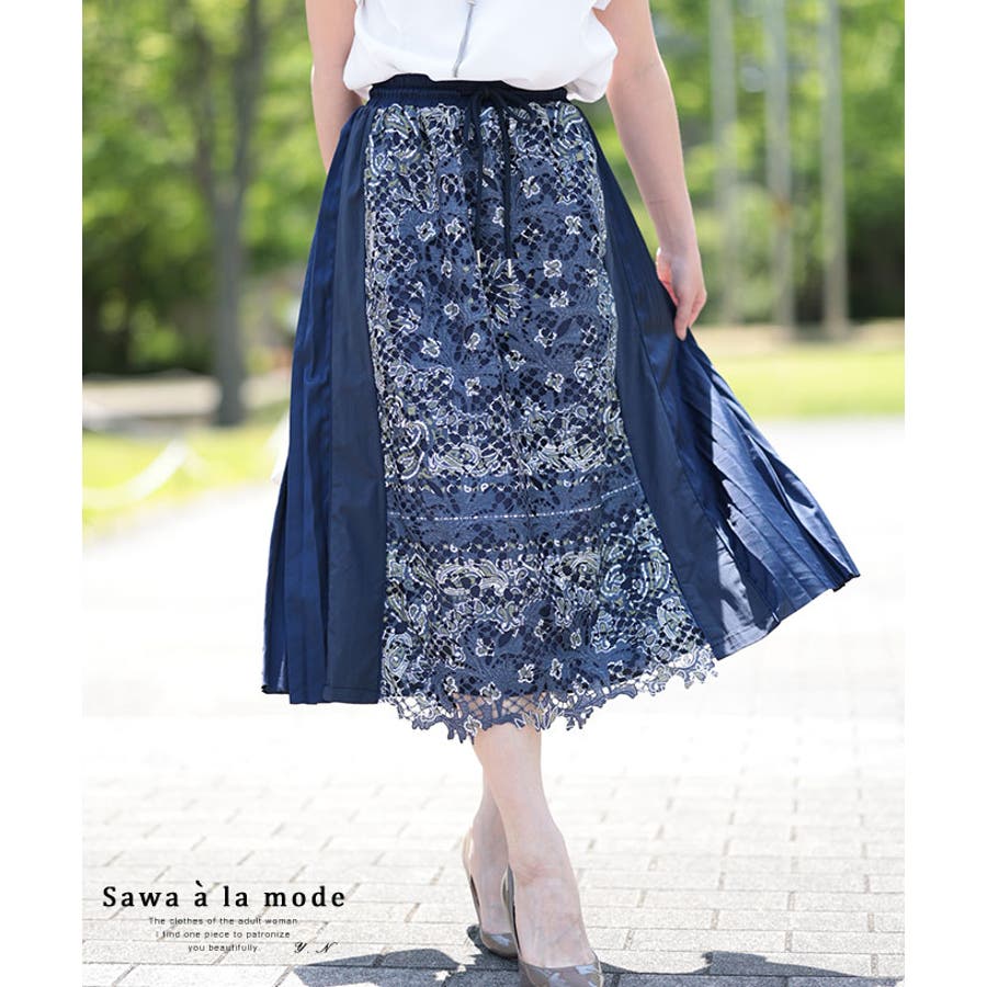 エレガントなレースが重なるバックプリーツスカート レディース ファッション
