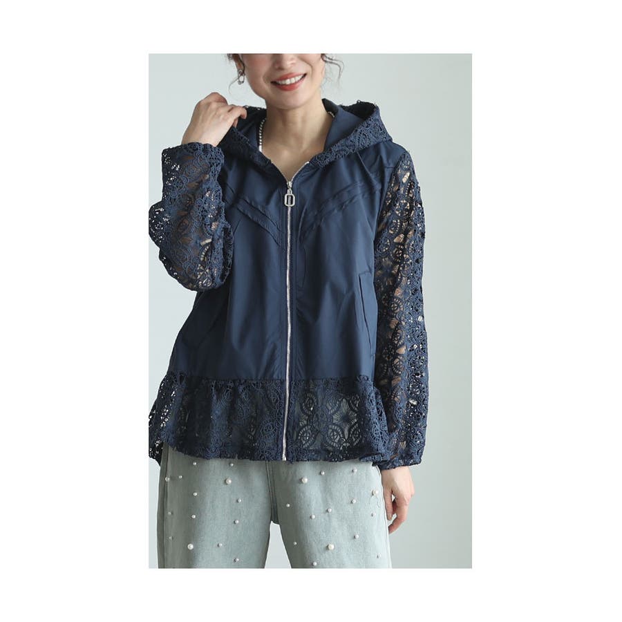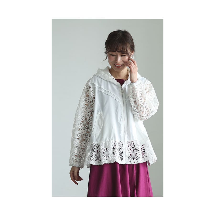 お袖と裾・フードがレースになっており程よい透け感で抜け感をプラス。