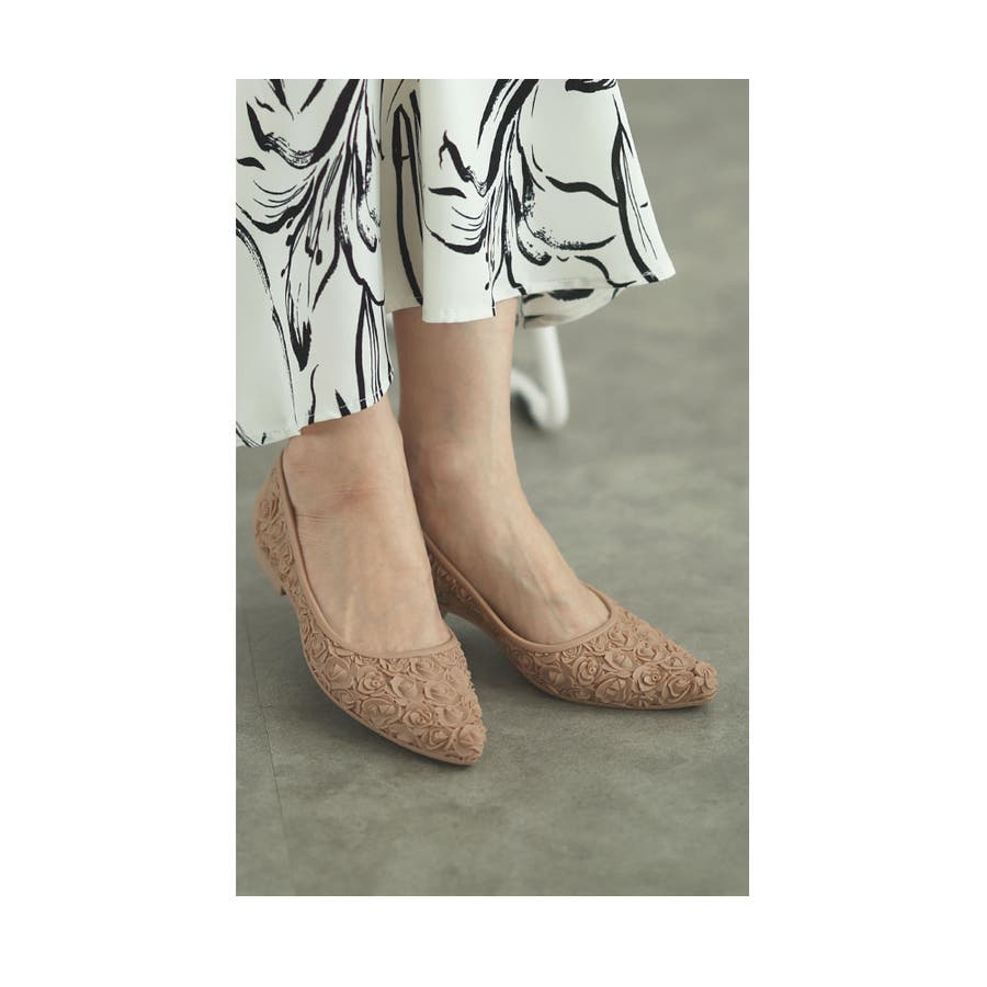 まるでブーケのように美しいバラ型押しは履くだけで足元が華やぎます。
