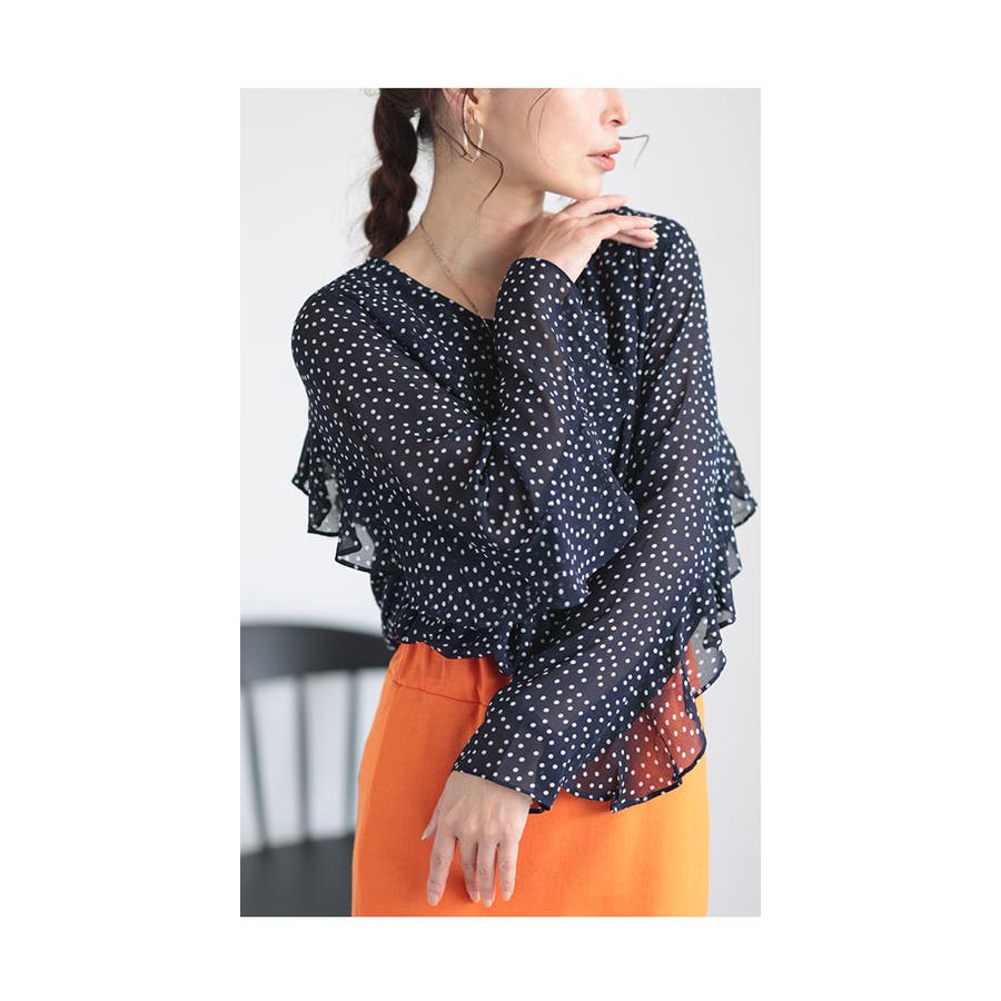 流れる華やかフリル袖のシアーブラウス レディース ファッション