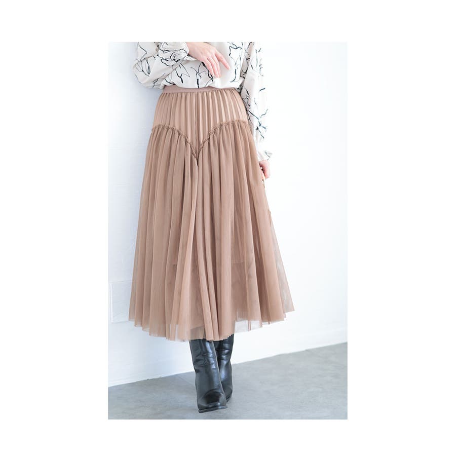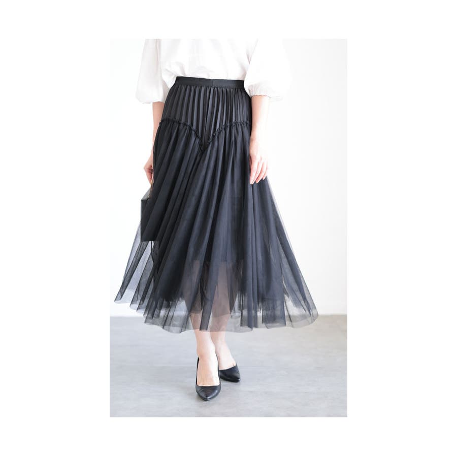 ふわり靡くチュールが可愛い切替プリーツスカート。