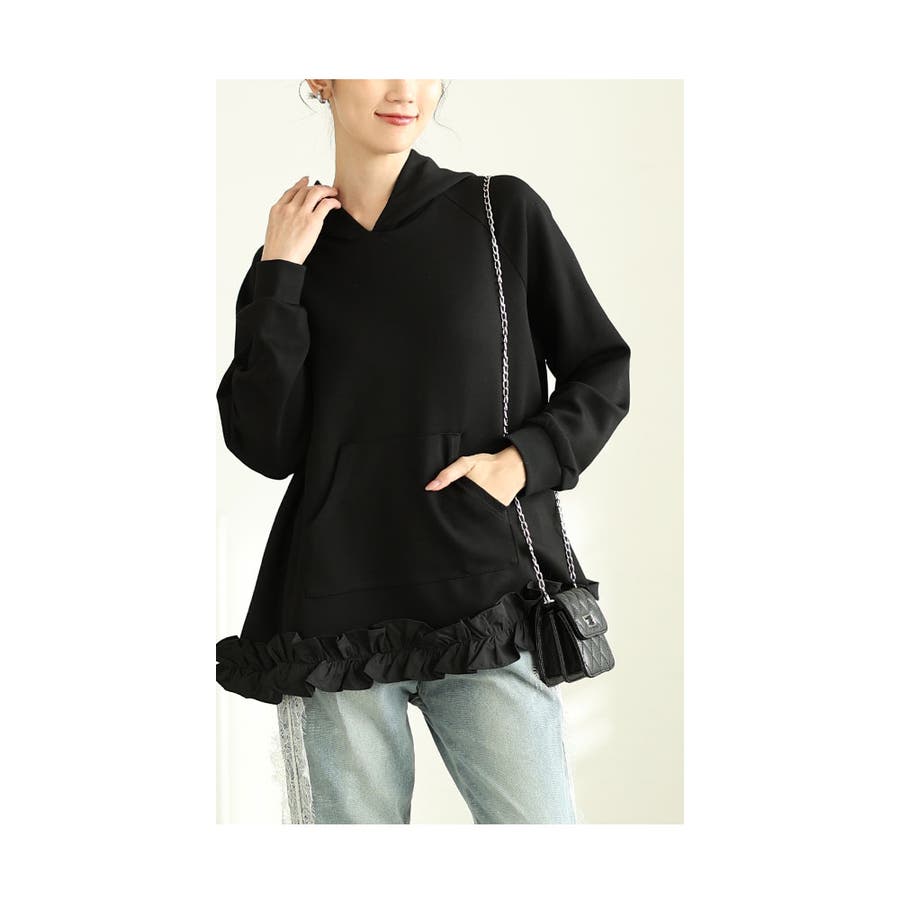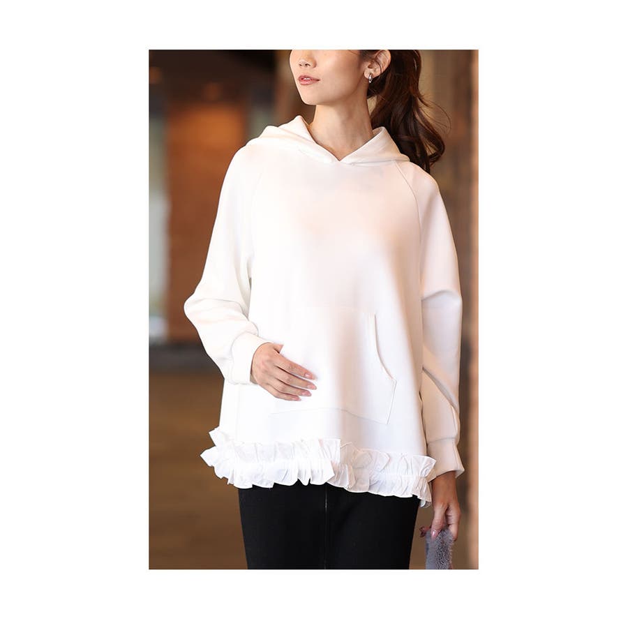 ラフなのに大人可愛く着こなせるフレアーフリルパーカー レディース ファッション