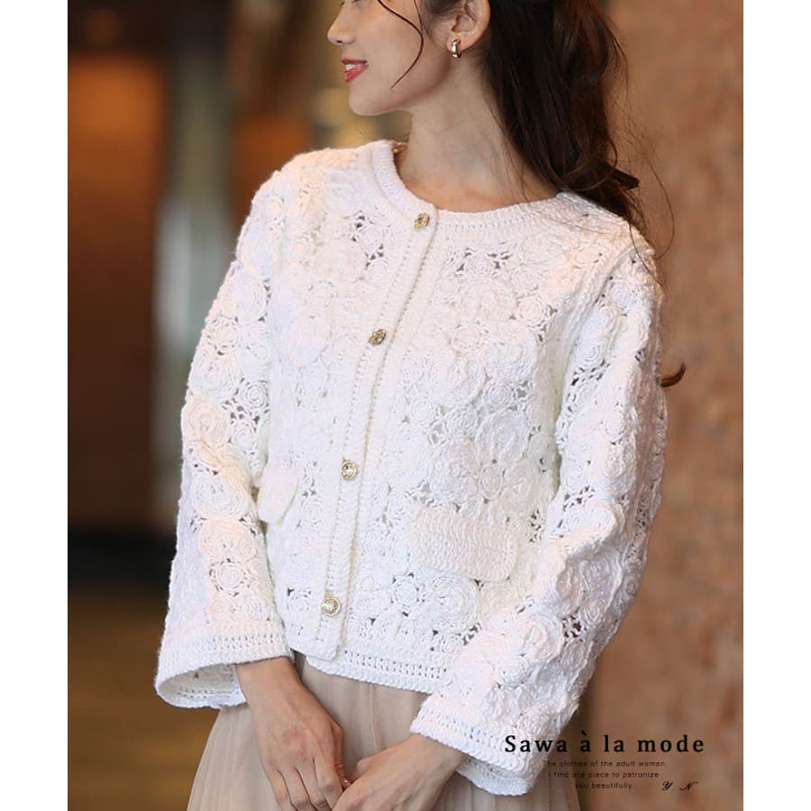 フラワーレースを紡いだ大人可愛いかぎ編みニットカーディガン レディース ファッシ…