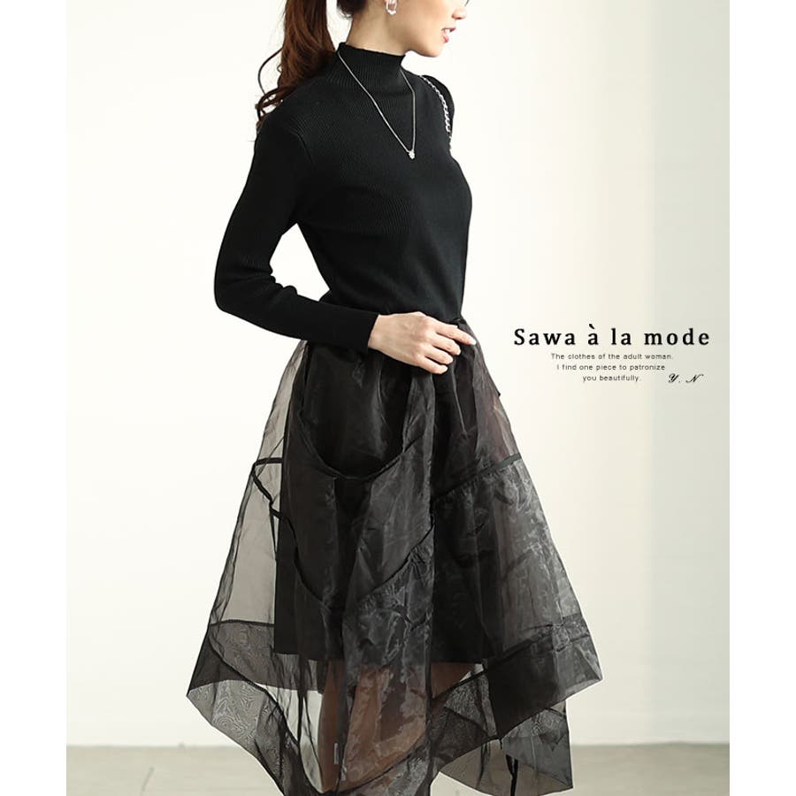 特徴: ニット アシンメトリー オーガンジー フレア ハイネック