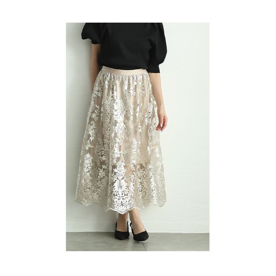 エレガントな柄が浮き立つ刺繍ベールのチュールフレアスカート レディース
