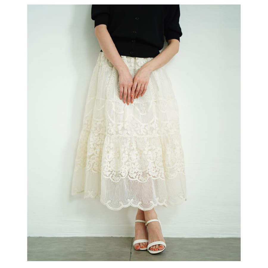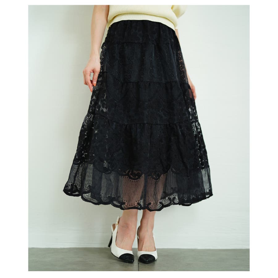 華やかさと繊細さを兼ね備えた刺繍レースティアードスカート。