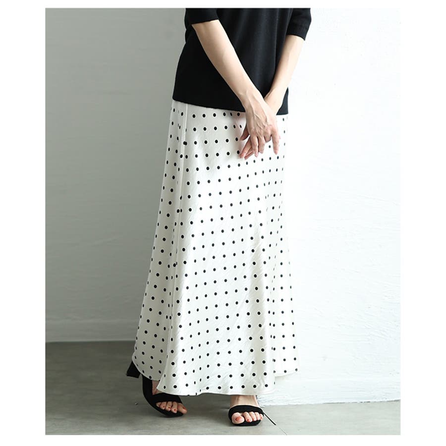 リュクスな雰囲気に包まれる艶サテンドットフレアスカート レディース ファッション