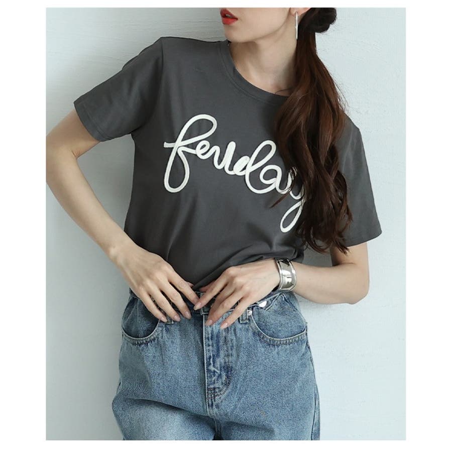 弾むようなロゴを描くコード刺繍コットンカットソー レディース ファッション