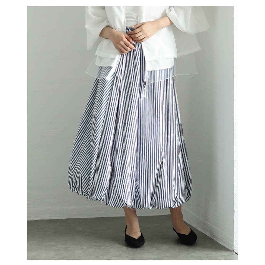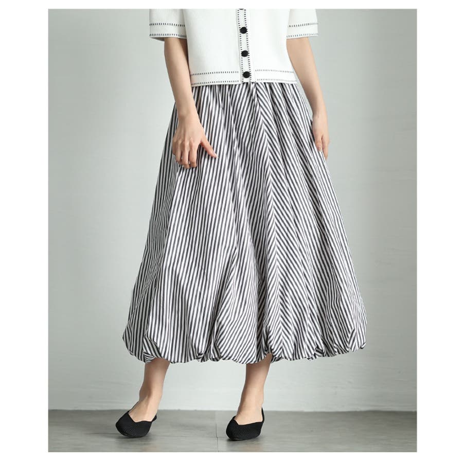 ふっくらシルエットでサマになるストライプ柄バブルヘムスカート レディース ファッ…