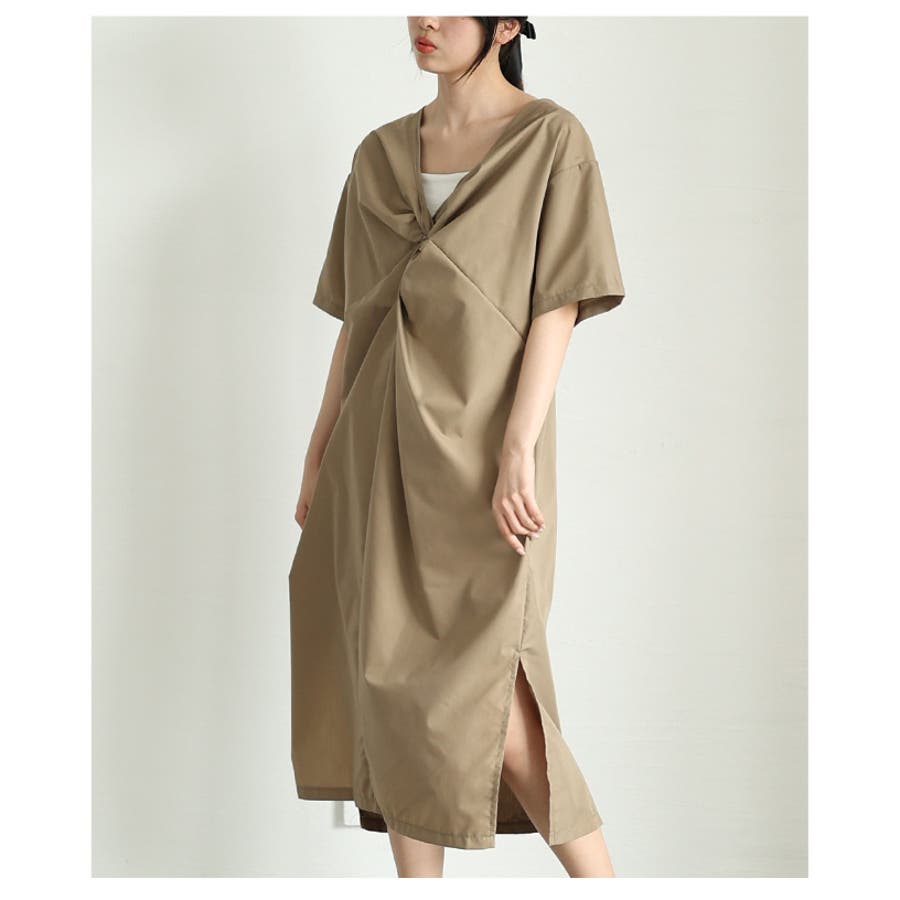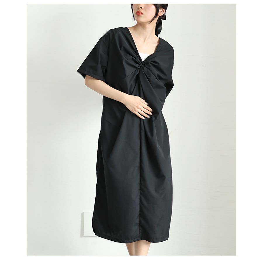 さっと着られて「即洒落る」フロントツイストギャザーワンピース レディース ファッ…