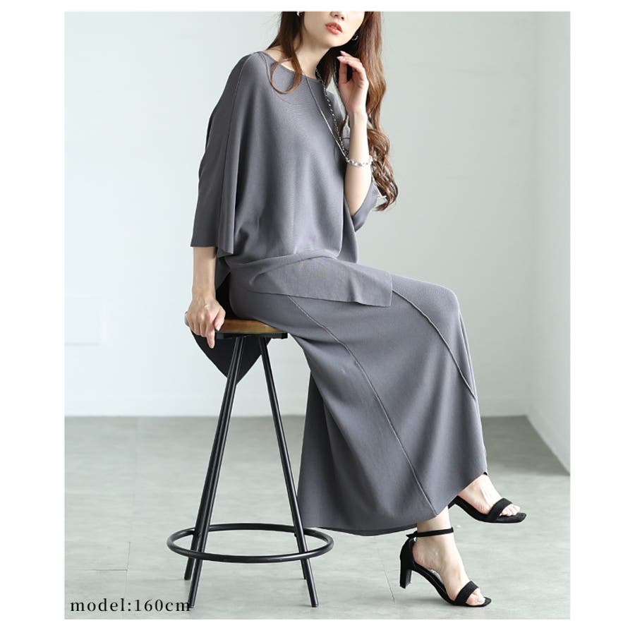 ヒップまで隠せる美バランスアシンメトリーニットセットアップ レディース