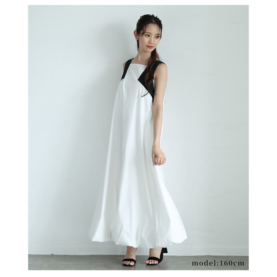 大人の個性をプラスするアクセントスリーブデザインのバルーンロングワンピース