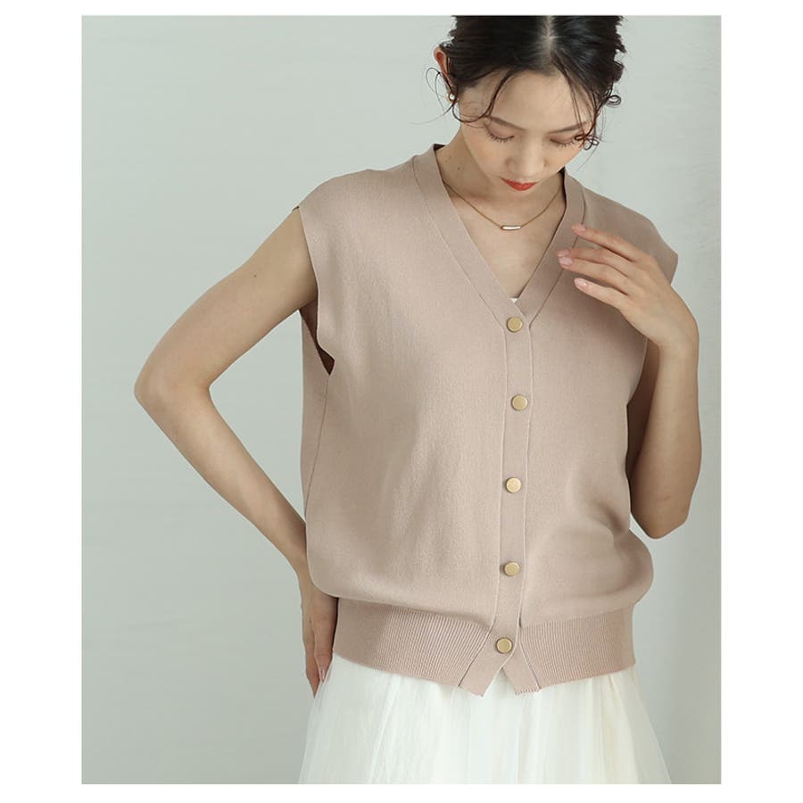 ハンサムライクなゴールド調ボタンVネックサマーニットベスト レディース ファッシ…