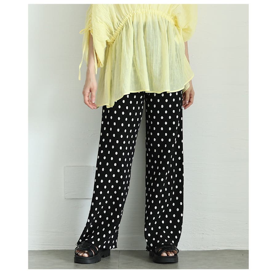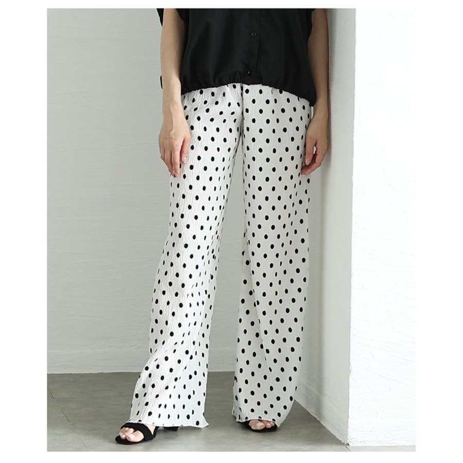 「可愛い」をつくるドット柄楊柳ワイドパンツ レディース ファッション